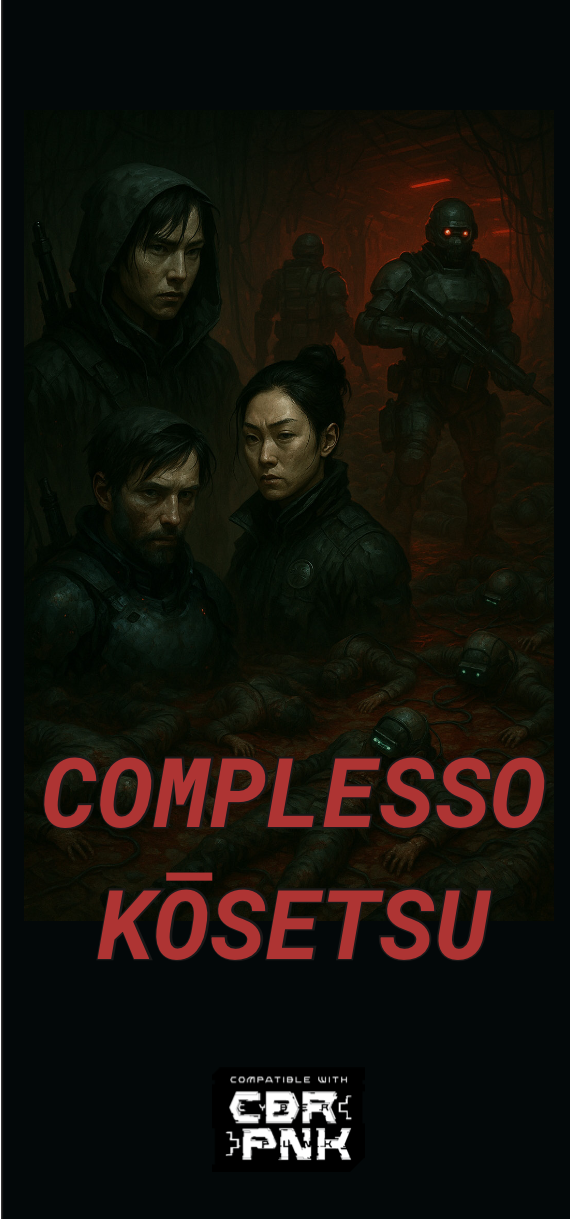 "Complex KŌSETSU" is a one- or two-shot module for CBR+PNK, designed to drag your crew through sanctuaries, barricaded districts, and cyber-haunted data vaults.